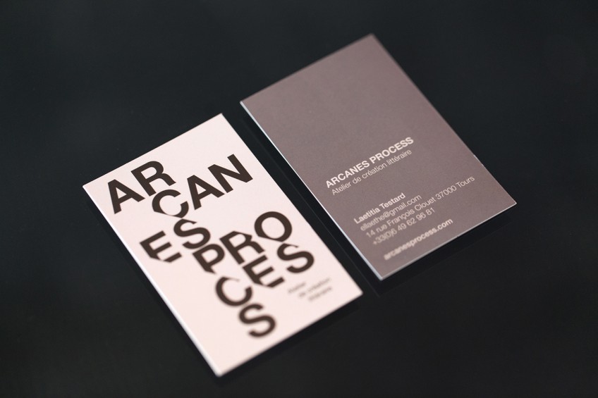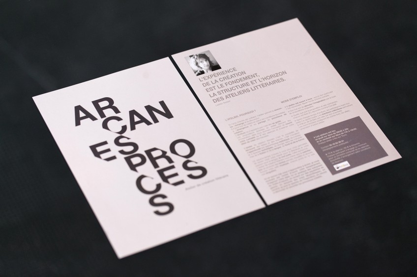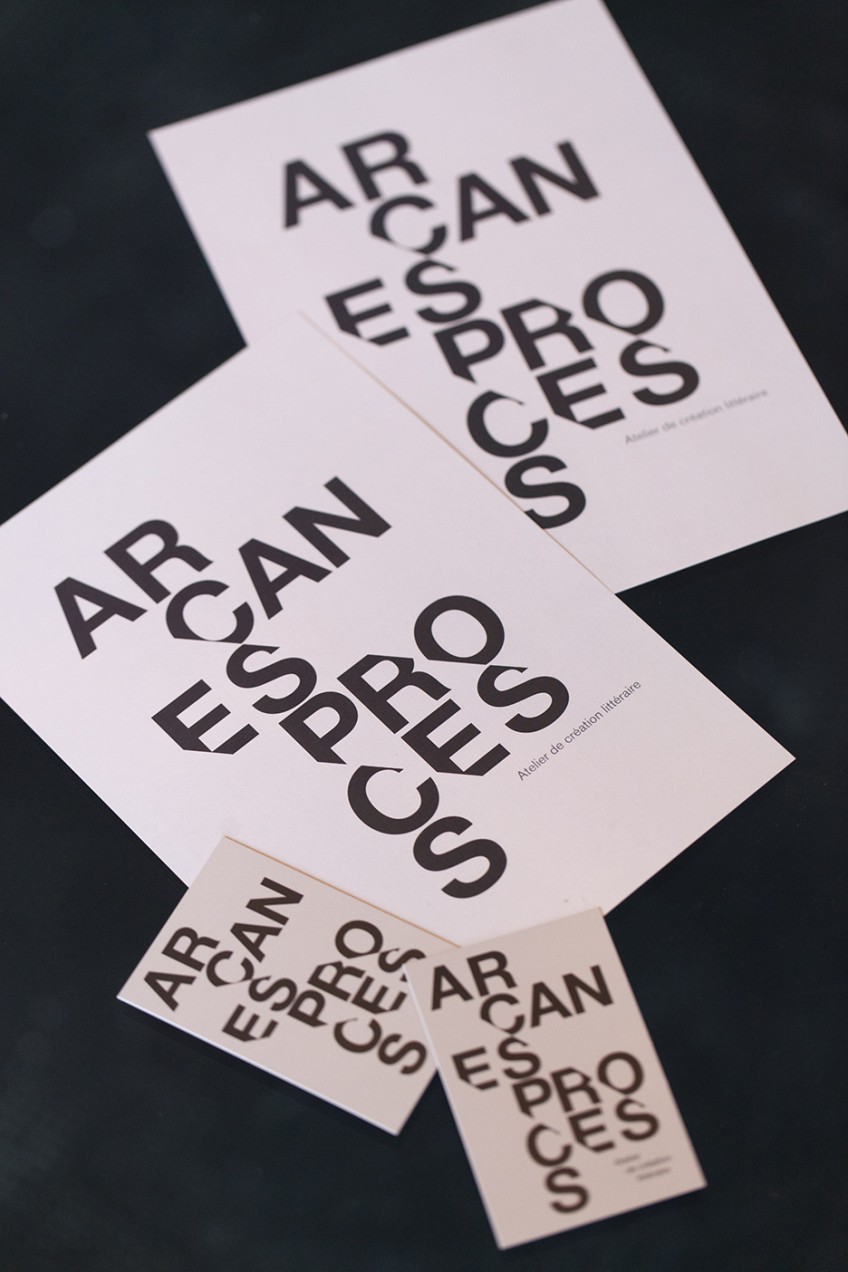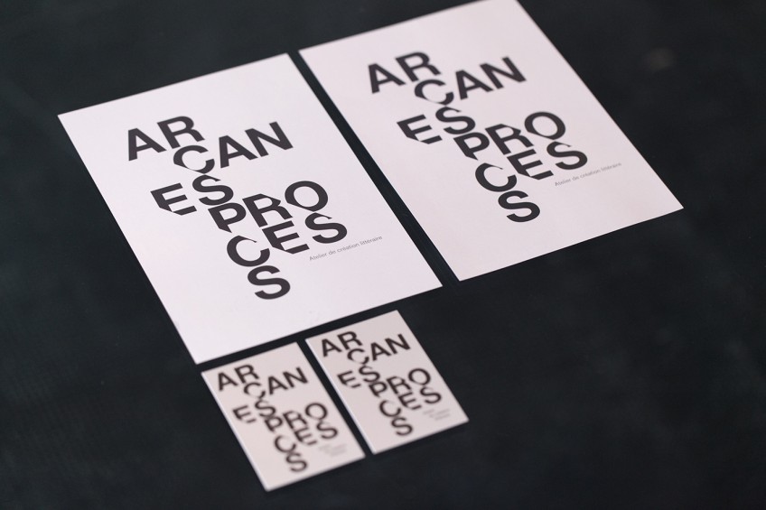 Arcanes process Ateliers de création littéraire. Identité visuelle (logo) / cartes de visite / flyer
